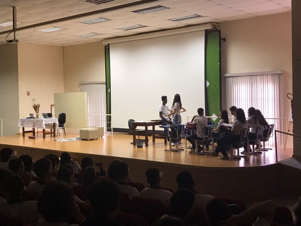 Os estudantes da turma do 1º ano "E" do curso técnico em Zootecnia do Ifes Campus Itapina apresentaram a peça teatral "Racismo é Burrice" no teatro do Ifes Campus Colatina.